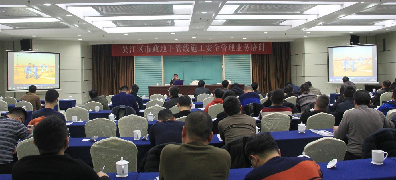 协会于2018年12月11日下午在吴江宾馆2楼4号会议室,和吴江区住建局一同组织开展了《吴江区地下管线施工安全培训》,本次培训吴江区住建局邀请了港华燃气经理邵庆、华衍水务管网运行部经理潘学峰、市政集团副总杨建伟进行授课。参加培训的人员均来自吴江区各市政施工企业。