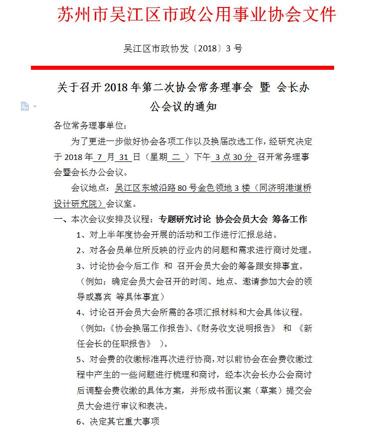 关于召开2018年第二次协会常务理事会暨会长办公会议的通知